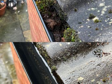 Gutter cleaning is carried out by manually removing debris using ladders and hand tools. Leaves, moss, and dirt are cleared by hand or with a scoop, then safely collected and disposed of.